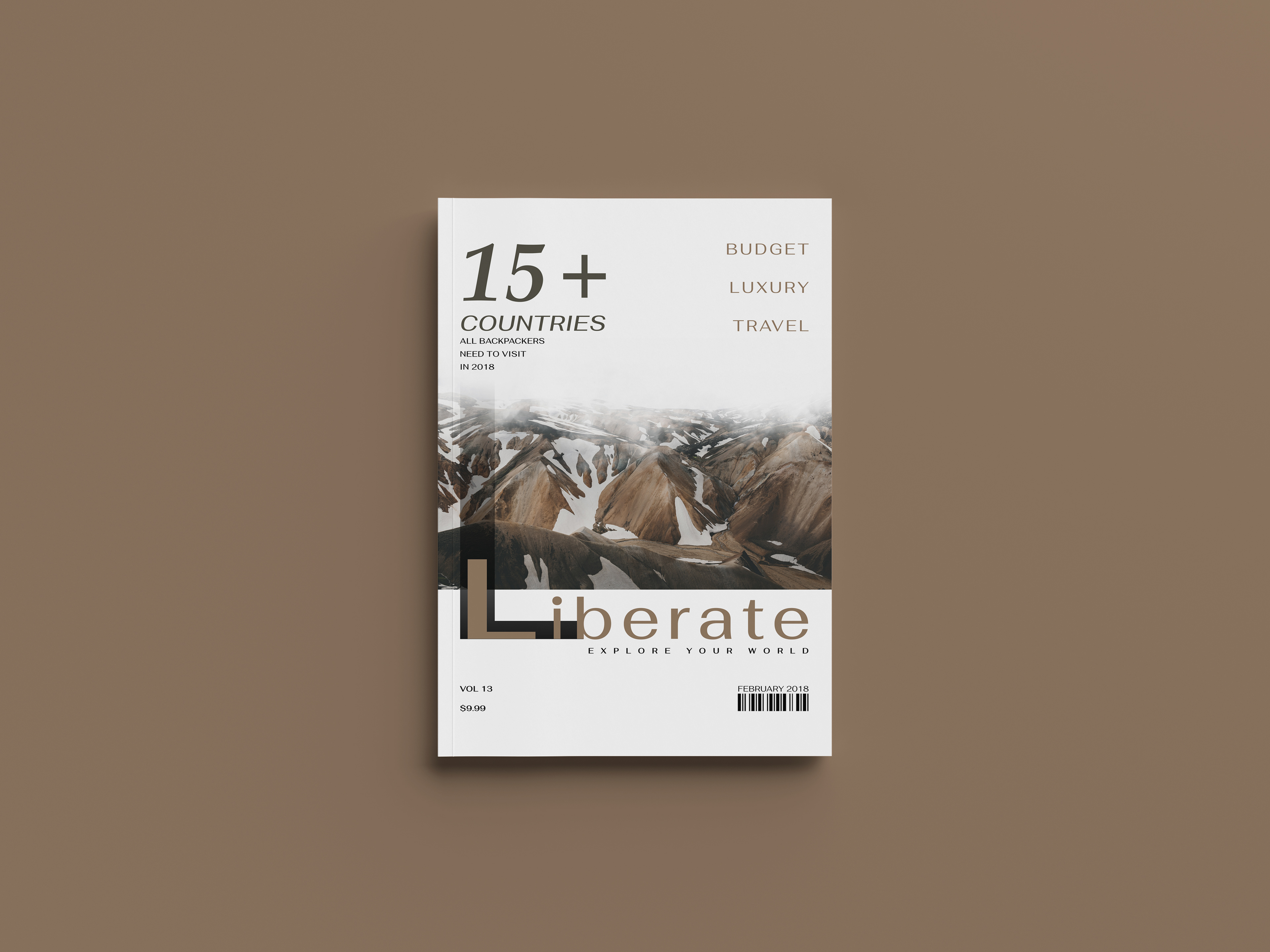 Liberate is a very minimal-style travel magazine that explores secluded parts of the world. It portrays a different vision of traveling which is within budget, yet provides luxurious traveling opportunities along with mesmerizing destination views.